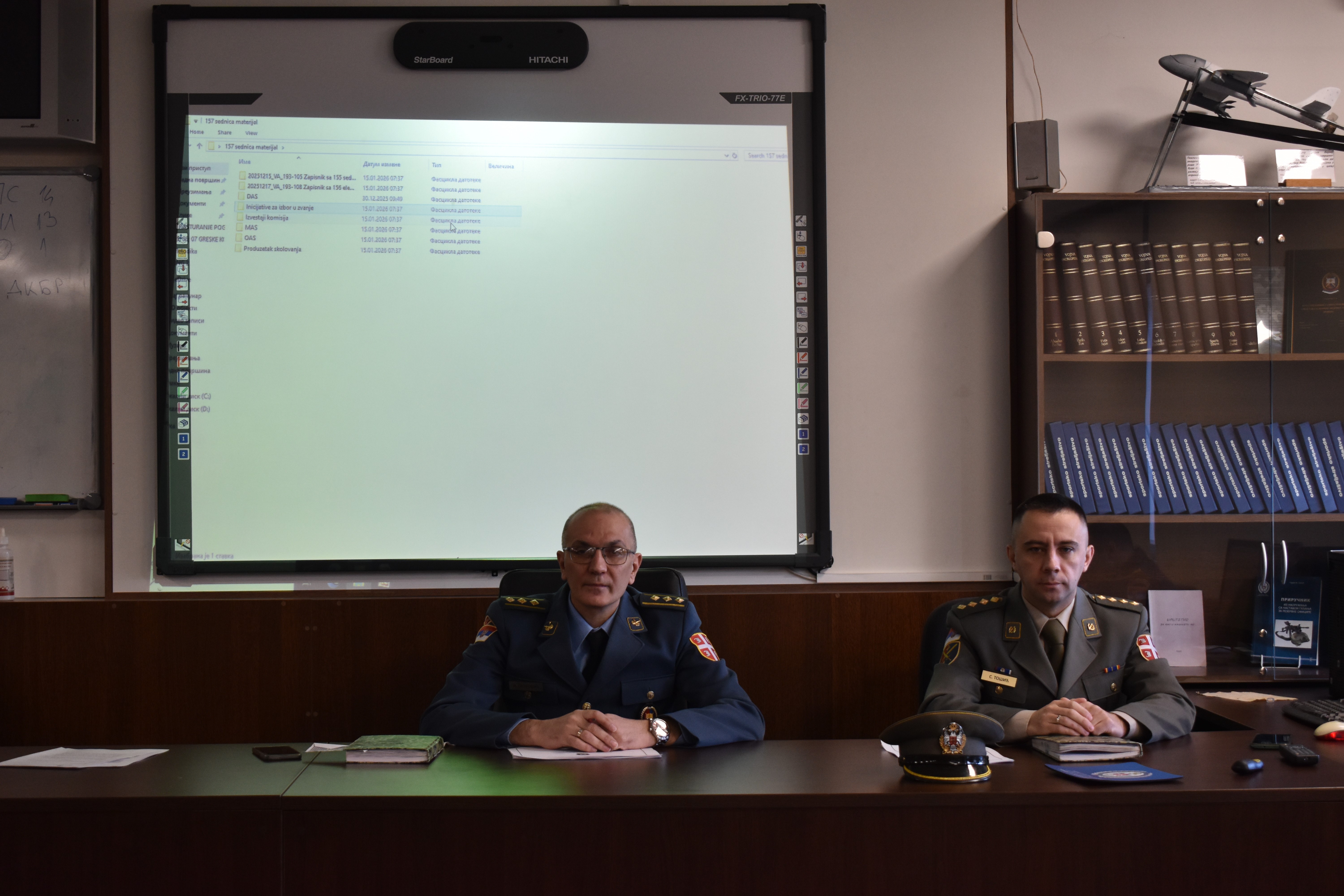 Седницом је председавао начелник Департмана друштвено-хуманистичких наука, пуковник ванр. проф. др Иван Петровић. Поред чланова већа и гостију, седници је присуствовао начелник Деканата ВА пуковник ванр. проф. др Драган Трифковић.