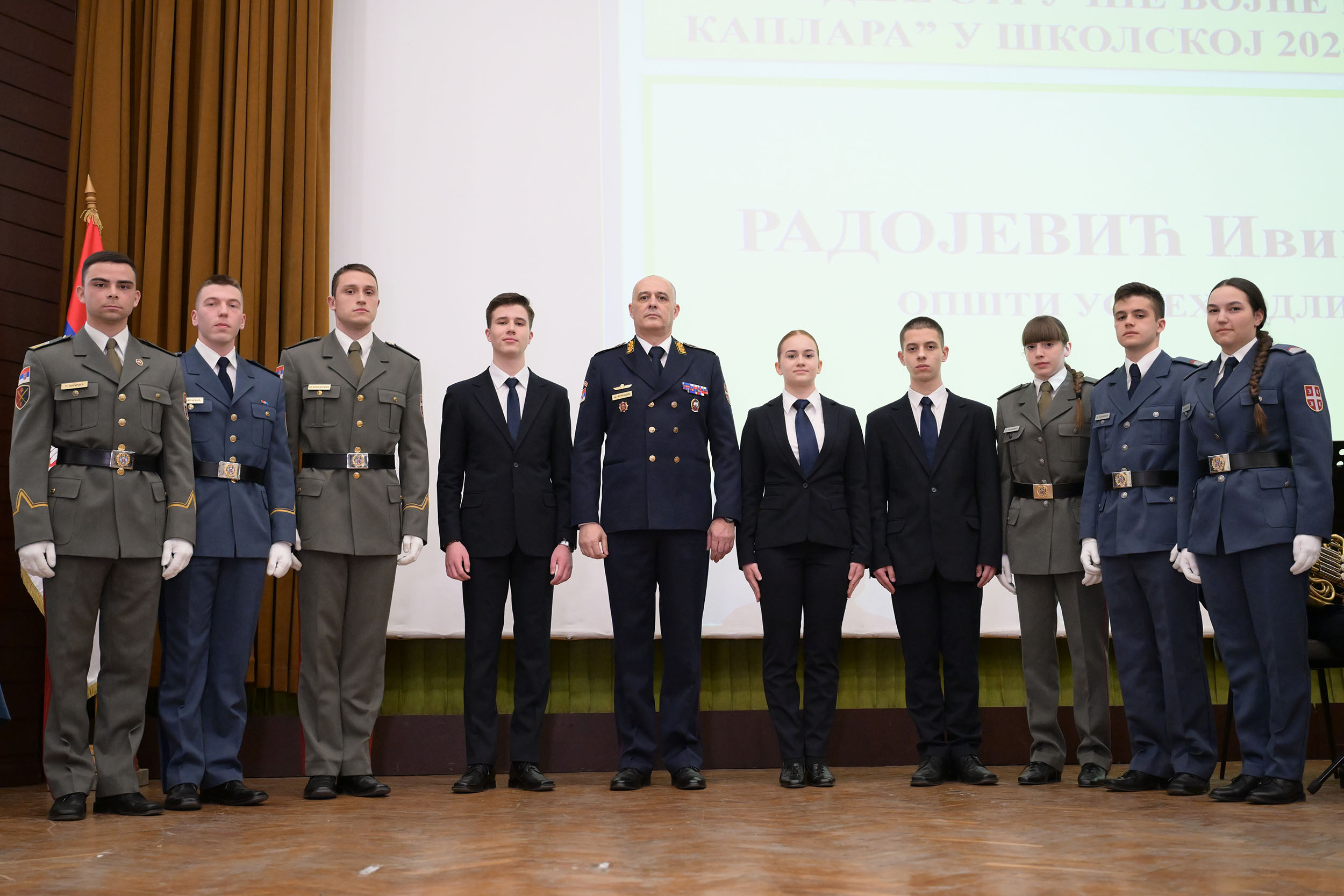 Најбољи наставник Војне гимназије у протеклој школској години је војни службеник Слободан Николић, док је најбоље рангирани наставник Средње стручне војне школе војни службеник Милена Спасојевић. Најбољи кадети су: Предраг Ђуричић из 147. класе, Ђорђе Шарчевић из 148. класе и Михајло Кузмановић из 149. класе. Најбољи ученици Војне гимназије су: Нестор Станић из 50. класе, Марија Радовић из 51. класе и Игњат Веселиновић из 52. класе. У Средњој стручној војној школи „1300 каплара“, најбољи ученик 53. класе је Катарина Срећковић, најбоље рангирани ученик 54. класе је Давид Зељковић, док је у 55. класи најбоље рангирани ученик Мина Радојевић.